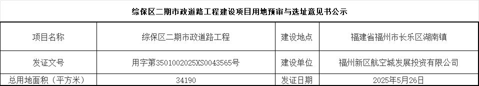 综保区二期市政道路工程建设项目用地预审与选址意见书公示