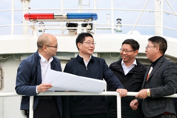 兰文一行乘船察看“海上长乐”重点项目,听取相关负责人分别介绍项目建设进展情况。