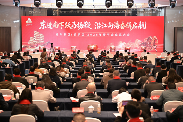 2月21日,福州新区(长乐区)2026年春节企业家大会召开,福州新区(长乐区)领导和域内外企业家代表、主要金融机构负责人欢聚一堂,畅叙乡情友谊,共谋发展新篇。