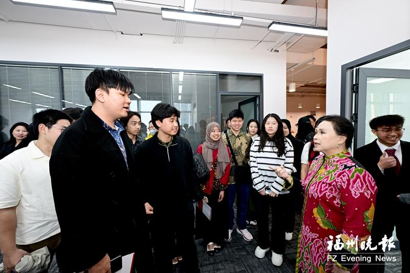 印中商务(福州)有限公司与印尼总统大学开展合作,中外学生参观该公司。