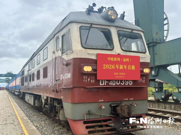 1月6日,满载100个标箱“福建制造”特色商品的中欧班列从福清江阴铁路物流园鸣笛启程,驶往俄罗斯莫斯科。这是中欧班列(福州)2026年发出的首趟列车。