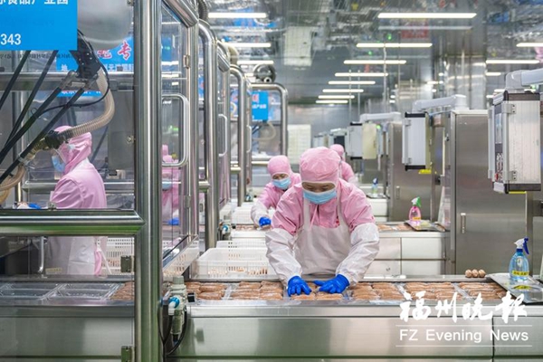 福建御冠食品有限公司生产车间内,工人正在赶制订单。