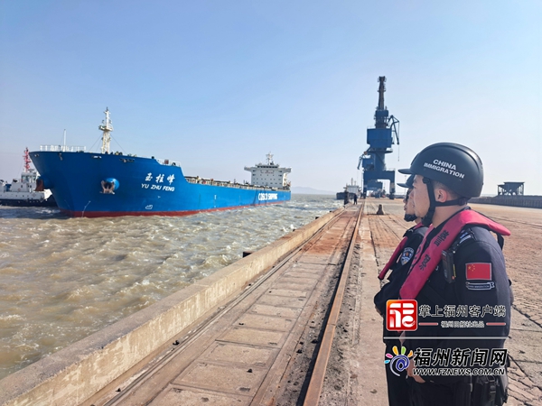福州机场边检站民警监护中国籍“玉柱峰”轮靠泊。张顺福摄