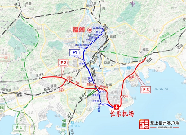 福莆宁F2、F3线将贯通运营,其中福州段起于温福铁路连江站,经琅岐站、文岭站、长乐机场站、福州新区站、罗联站,终于福厦高铁福清西站。